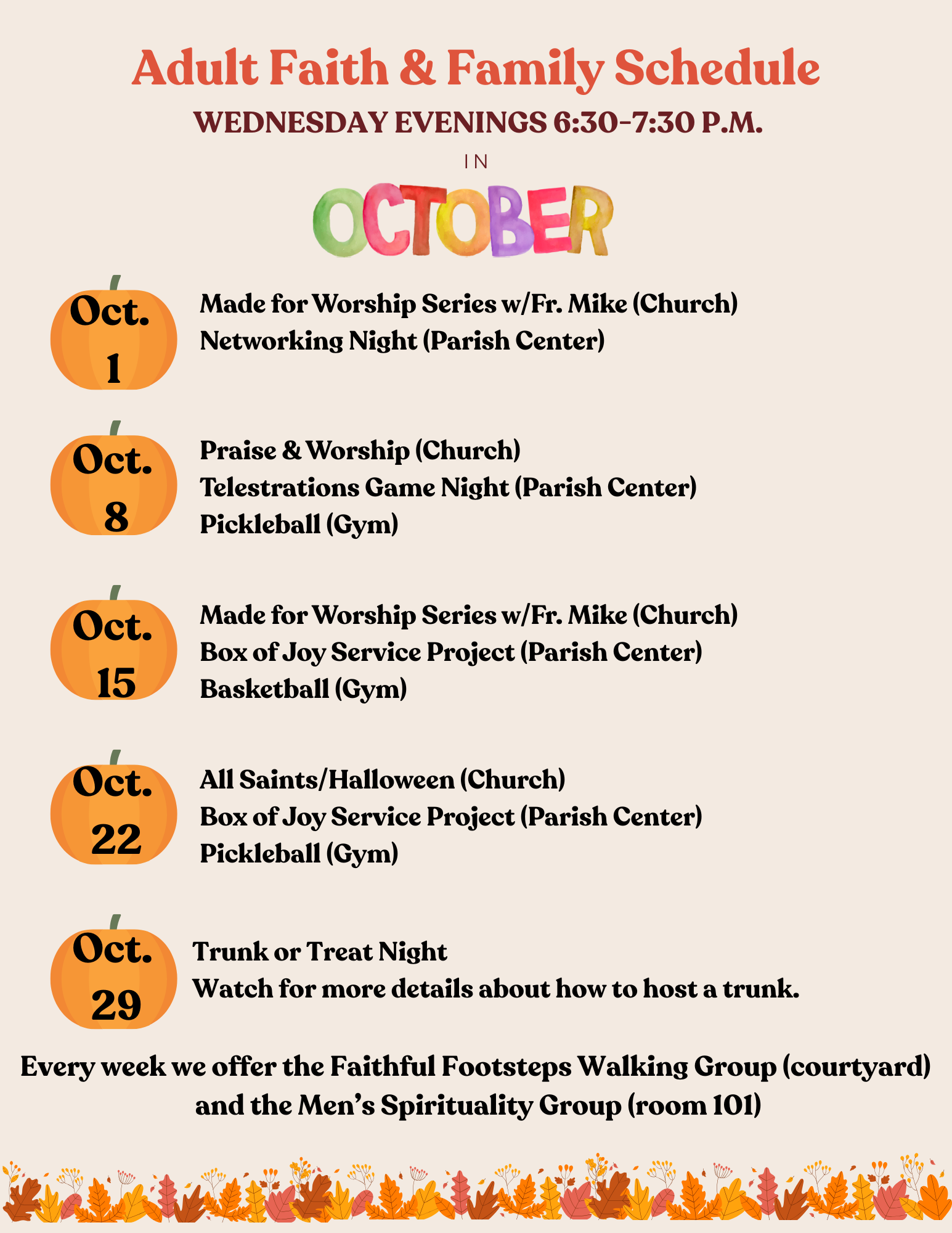 Thank you to all who supported the breakfast in September. The crowd and the donations were amazing. They loved serving you. They will be hosting the next pancake breakfast on October 26 after the 9 am and 10:30 am Masses. Please come and enjoy some delicious food. The cost per plate is up to you. They accept donations.